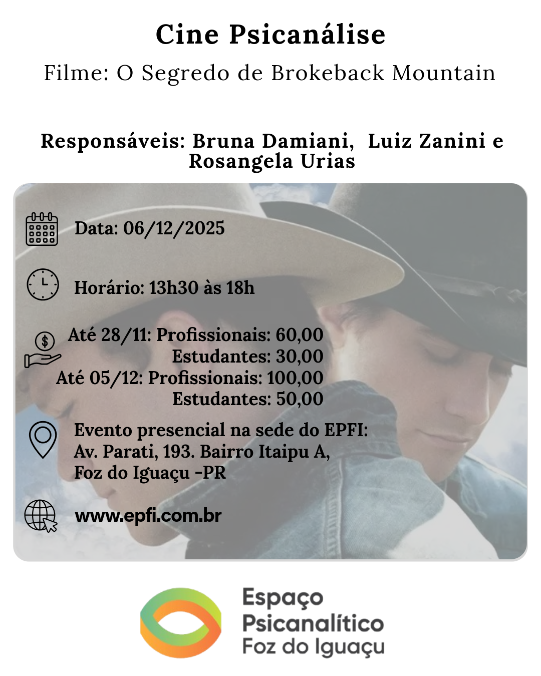 Inscrições para quem não tem CPF: entrem em contato pelo WhatsApp do Espaço Psicanalítico: 45 9980-6716